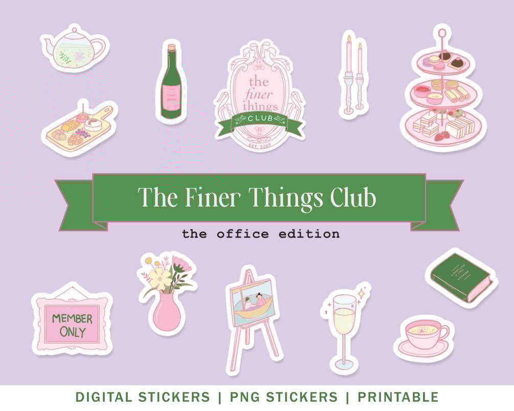 11 stickers design inspired by the Finer Things Club [PNG + Goodnote sticker sheets file]