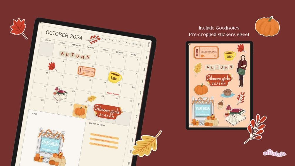 - 13 high quality PNG Gilmore Girls Fall Theme digital stickers in Zipped File (for Good Note or other digital planner app)