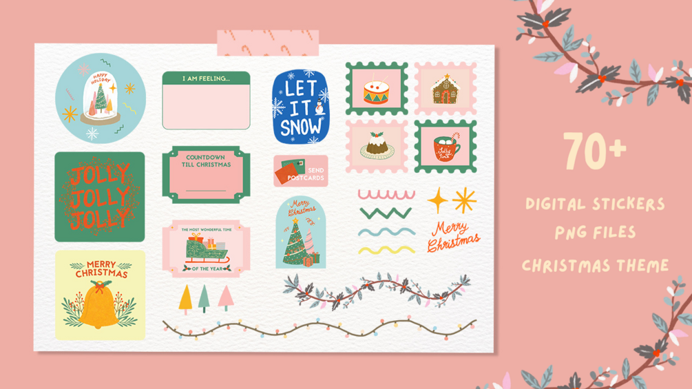70+ PNG set of Jolly Christmas theme Digital Stickers with high quality for Good Note or other digital planner app!